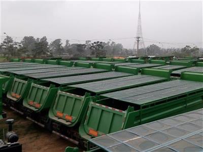 Khung bạt che phủ thùng điều khiển bằng điện. Đuôi có chữ “LONG VEHICLE”; đầy đủ đèn LED xi nhan, đèn phanh, đèn lùi; phản quang xung quanh. |