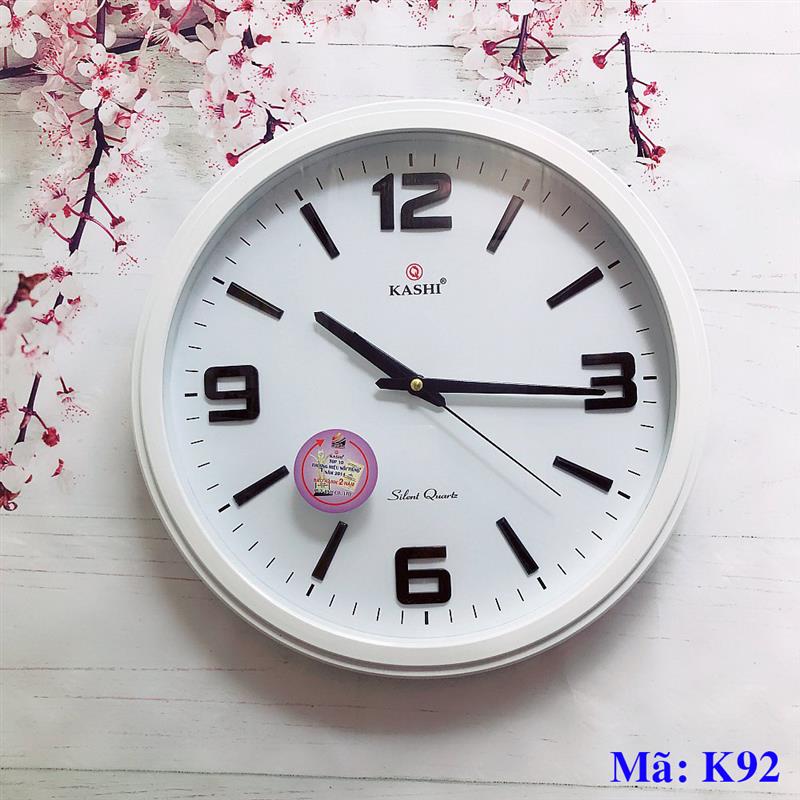 - Loại: Đồng hồ treo tường - Hãng sản xuất: Kashi - Mã: K92 - Chất liệu: Nhựa, kim loại - Tính năng: Kim trôi - Kiểu dáng: Hình tròn - Kích thước: đường kính 38cm - Xuất xứ: Việt Nam - Bảo hành: 24 tháng