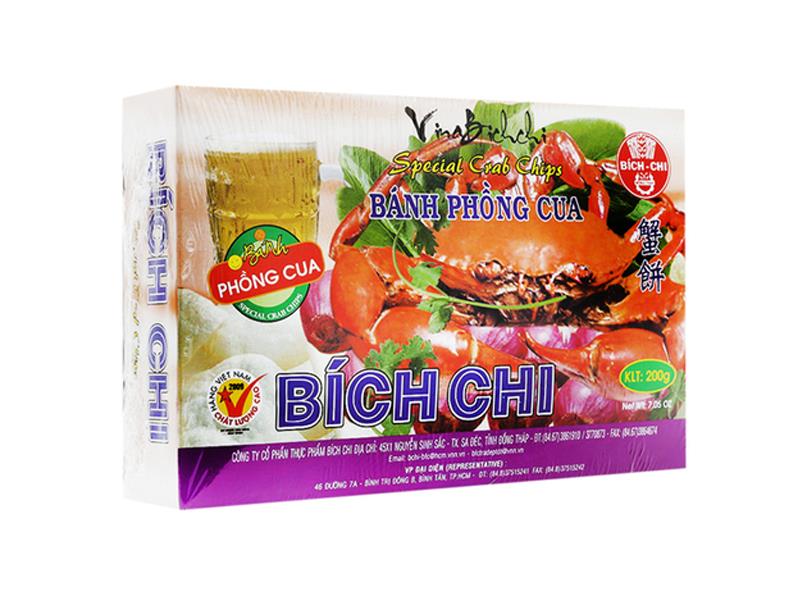 Bánh phồng cua Bích Chi được sản xuất theo công nghệ hiện đại. Mọi khâu từ tuyển chọn nguyên liệu tới chế biến, đóng gói đều diễn ra khép kín dưới sự giám sát và kiểm tra nghiêm ngặt. Sản phẩm không chứa hóa chất, chất bảo quản độc hại, đảm bảo an toàn cho sức khỏe người tiêu dùng. Sản phẩm có hương vị thơm ngon của những nguyên liệu tự nhiên được chọn lọc kỹ càng, khi chiên phồng bánh có độ giòn, đậm đà, kích thích vị giác, phù hợp khẩu vị của người Việt Nam. Khi không có nhiều thời gian dành cho việc nấu nướng, Bánh phồng cua Bích Chi là lựa chọn hàng đầu dành cho các bà nội trợ, chỉ mất thời gian khoảng 10 phút là bạn đã có ngay một đĩa bánh thơm ngon, hấp dẫn.
