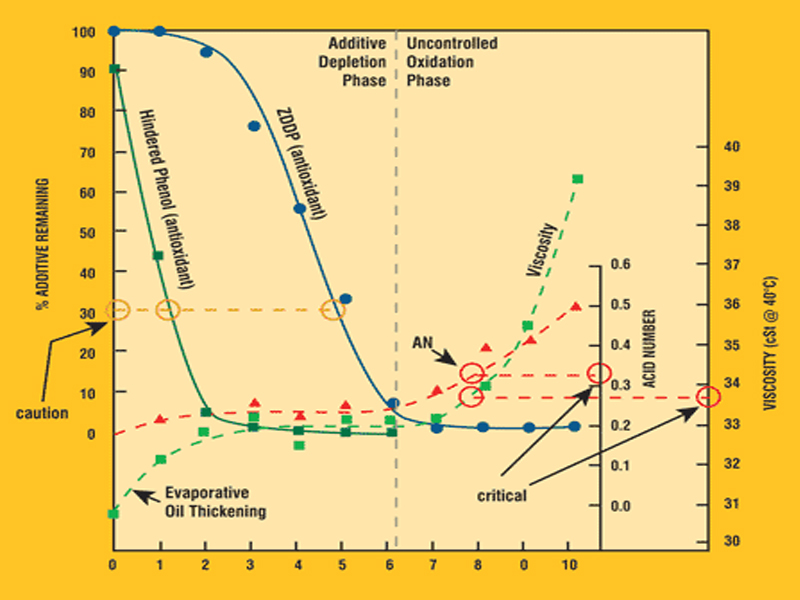 Chính từ các lý do này nên hai thông số cần phải xét độ bền oxy hóa của dầu là hàm lượng axit (trị số trung hòa) và hàm lượng cặn (sludge)