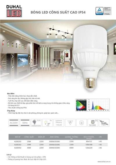 - Thân đèn bằng nhôm bọc nhựa dẫn nhiệt.