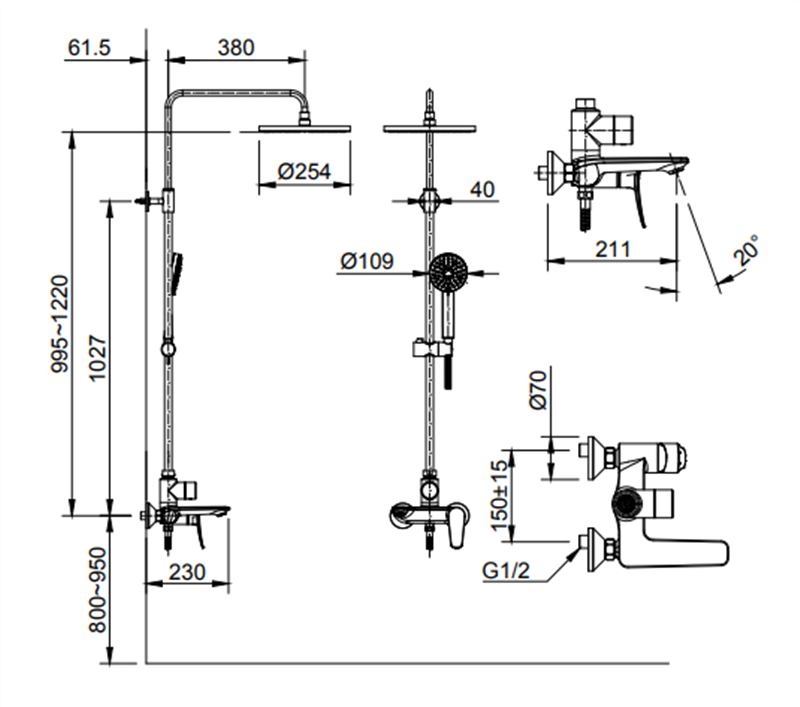 Bản vẽ kỹ thuật sen cây tắm nóng lạnh INAX BFV-515S