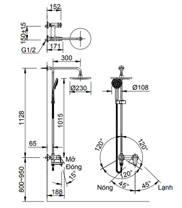 Thông tin cơ bản Sen Tắm Cây Inax BFV-915S Nóng/lạnh